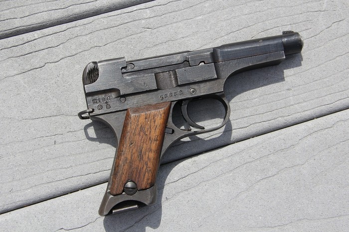 Он использует значительно более слабый боеприпас, чем все служебные пистолеты тех же годов - 8x22мм. В магазин этого пистолета помещается всего 6 патронов.