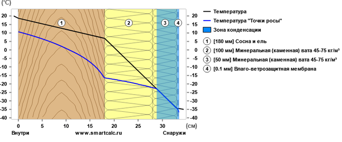 Если отсутствует пароизоляция и утепление стен недостаточно - теплопотери через щелевой воздухообмен могут быть очень значительными. Например, этим летом я смотрел брусовый дом обложенный кирпичом, кратность воздухообмена составила 8 объёмов в час! Восемь раз за час нагретый воздух зимой покинет помещение. За сутки системе отопления придётся нагреть полный объём помещений дома 192 раза!
