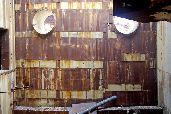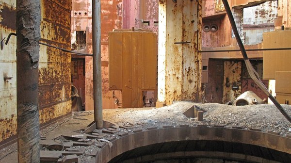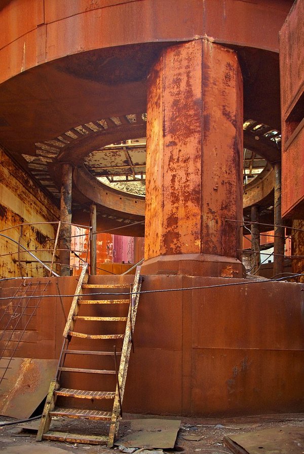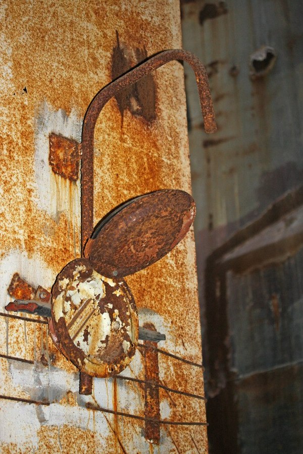 Я не помню, для чего предназначалась эта штука. "Экскурсовод" называл ее просто "улиткой". Что в ней примечательного? Эта дура высотой в полтора человеческих роста, и полностью выполнена из нержавейки. Да, целиком. Пыль и ржавчина снаружи - налетевший мусор. Что с ней не так? Видите, внизу край какой-то неровный, квадратами?
