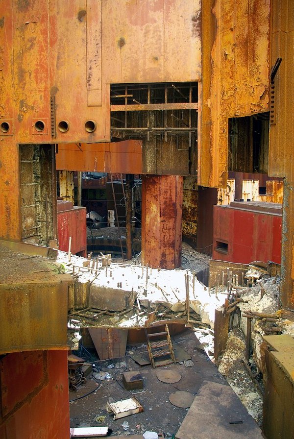 Как оказалось, экскурсовод в этой вакханалии бетона, стали и ржавого железа был совершенно не лишним. Лестниц в станции четыре, по количеству углов, на крышу ведет только одна. А вот входов-шахт несколько, но выглядят они все примерно одинаково. Вот так.