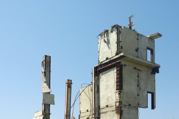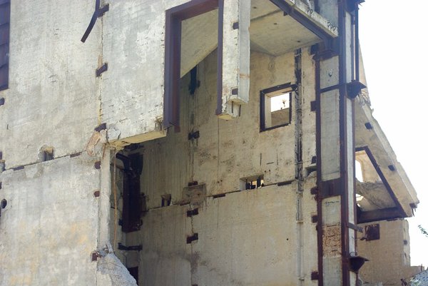 Абсолютно, феерически мертвое место. Место, в котором никогда не работали и не жили - его начали создавать и бросили нерожденным. Контрастом ко всему выступало тревожное птичье "чириканье" - на крыше гнездилась пара ястребов. Заснять не удалось, но впечатление получалось мозговыносящее.