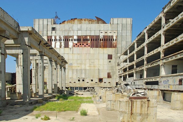 А посреди всего этого великолепия возвышался молчаливый куб самого странного недостроя времен СССР. Строительство этого чуда атомной промышленности начали еще в 1975 году, но после аварии в Чернобыле резко перестали. Таким образом внезапно вышло, что один из самых дорогих проектов еще Союза оказался заброшен, и более не достраивался и не восстанавливался. Причем забросили его далеко за середину процесса - по информации вездесущей Википедии первый энергоблок был собран на 80%, второй - на 18%.