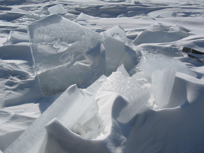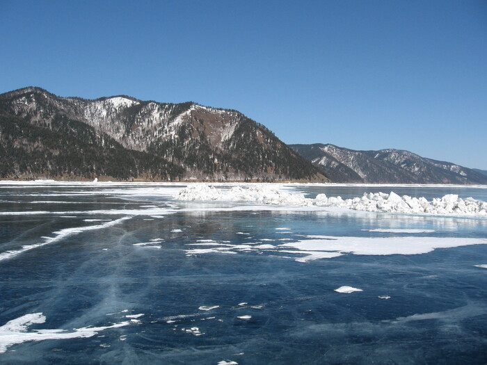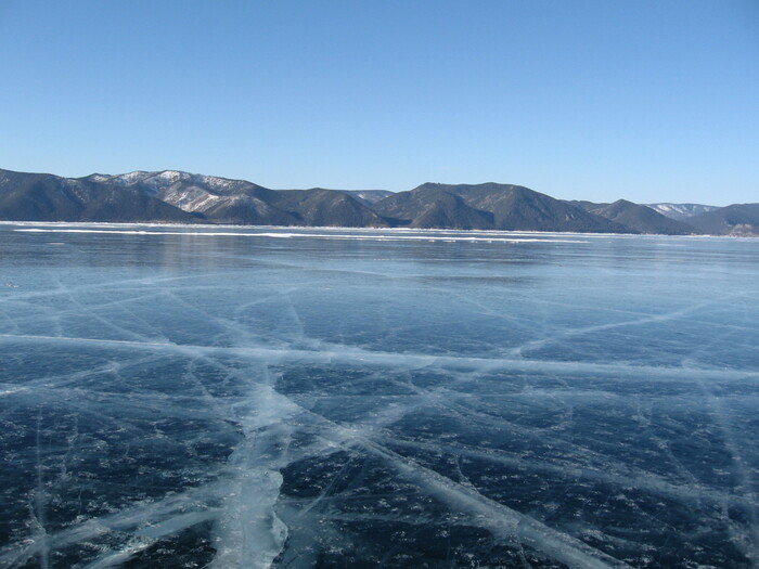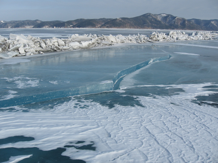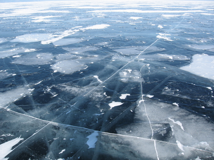 К середине зимы в ледяном покрове Байкала появляются трещины, которые называются у местных жителей «становыми щелями».