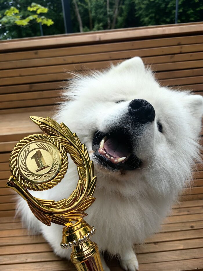 Очень много споров об этиологии название породы Самоед. Версии очень разные, от общего названия народностей, где появилась порода, а это территория крайнего сервера, до интерпретации название пароды, она же как звучит! Не цвергпинчер или ризеншнауцер, которые как тест у логопедов придумали, а Самоед. Уже само название обволакивает ваши уши и возбуждает воображение и аппетит:)). Кого он ест или куда едет. Но главное здесь корень САМ. Самоед живое воплощение самости, это их кардинальное отличие от других пород. Про это не достаточно прочитать, этого мало понять, это надо прочувствовать. Он не будет вам служить, не будет вас охранять, не будет ничего сторожить, не будет развлекать детей, просто потому, что так в интернете написано. Я честно не знаю, как они ездовыми были. Они не считают себя вашими питомцами, они считают вас своей семьей, можно было бы использовать термин стая, но она хуже передает смысл, самоеды не про иерархию. Они про доверие. У них в семье нет вожака, есть человек, в одобрении которого они больше нуждаются сейчас. А завтра им достаточно вашего вчерашнего одобрения, поэтому у него резко глухота, амнезия и другие заболевания, которые могут оправдать их не желание делать того, что они не хотят, и вообще кожаный, я эту команду первый раз слышу. Пока вы учитесь говорить нет в своей жизни, у Самоедов это в базовой настройке. И всегда смотрят своими умнейшими карими глазами с типичной самоедской ухмылкой на все ваши просьбы. Они всегда наблюдают за вашей реакцией и поведением , чтобы потом использовать в своих интересах, эти хвосты достигли предельных высот в манипуляциях. Они понимают вас больше, чем вы сами.