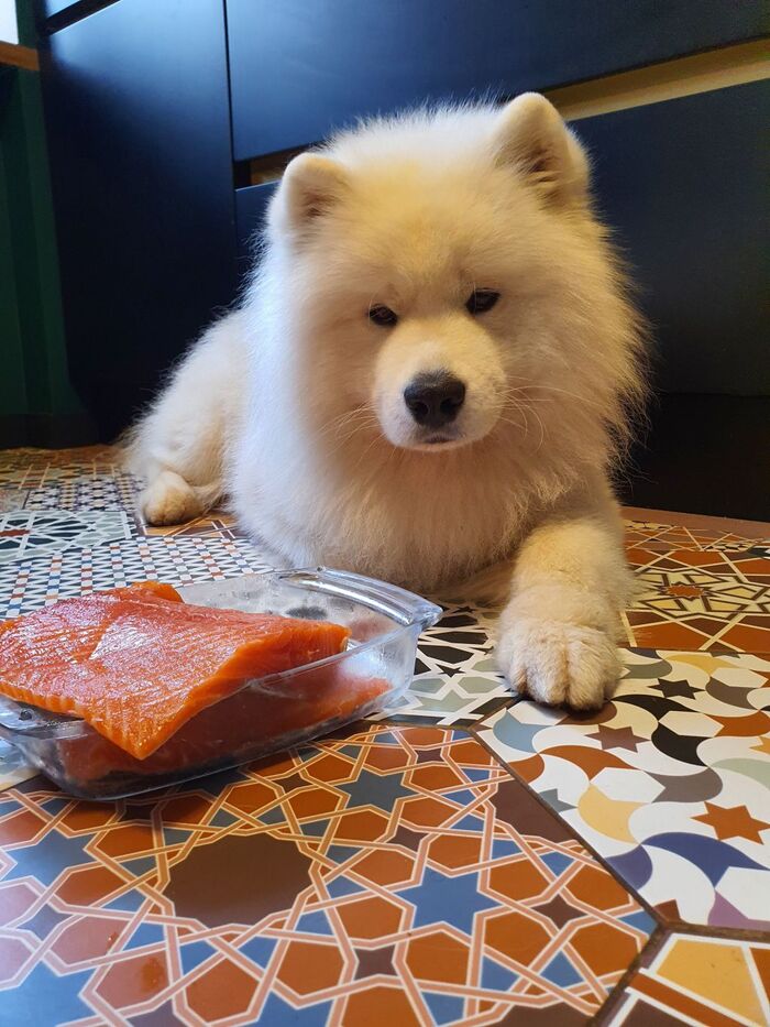 Тут все индивидуально, нет никаких однозначных историй успеха. Кому то подходит сухой корм, кто то сидит на натуралке. Все собаки разные, надо только всегда обращать внимание, подходит ли питание конкретно вашей собаке. Нет ли покраснений, не текут ли глаза, нормальный ли стул. Мы начали с сухого, но Мальбек перевёл себя на натуралку, да он любит вкусно поесть, особенно морской лосось и мраморную говядину, но это только за заслуги и по праздникам. Почему сам? Это же САМоед, как я говорил мастер манипуляций и актерище, отказать ему мне сложно, я слабый, а это не самая страшная слабость, зато ему вкусно. Сейчас его рацион Терпуг+крупа+овощи рубец. Ещё творог и кефир с удовольствием ест. От мяса у нас краснеет шерсть вокруг глаз. В любом случае, правильное питание это 80% здоровья собаки, и надо быть внимательным.