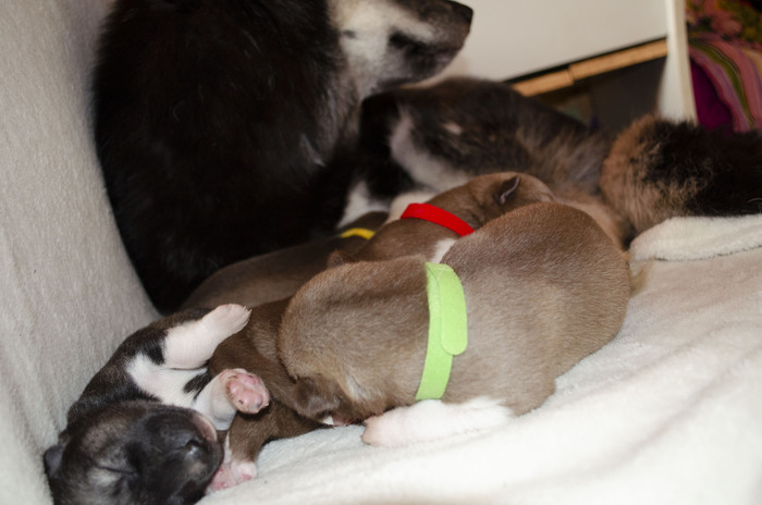 Это не пост про поиск хозяев щенкам, щенки все уже нашли своих хозяев✊ Просто фото любимой карельской медвежьей собаки и ее щенков от западно-сибирской лайки. В следующем посте расскажу всю историю появления потомства…