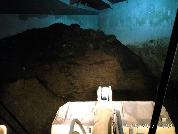 А вот такая стена глины (никелевая руда) высотой 10 м, к сожалению на фото не видно как она нависает над тобой) с такой работой постоянно, либо что то сыпется с под колес, либо что-то нависает над тобой. Всю ночь этот угол пластилина колупал, ну очень плохая партия груза)