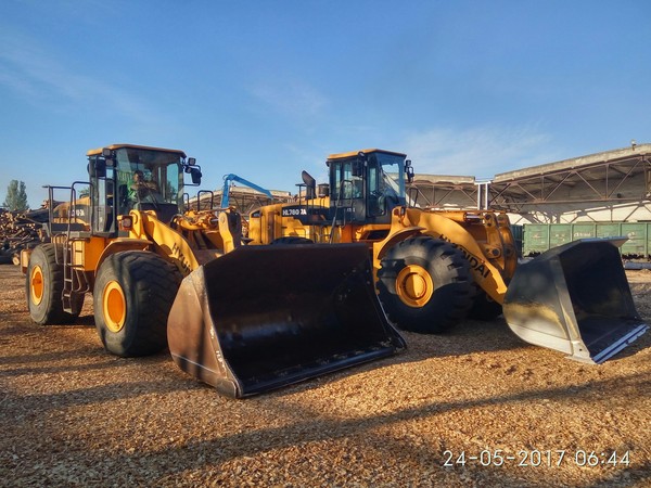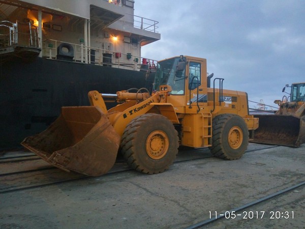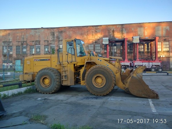 Отдыхает на пересменке, трудился на причале, что там малыши в трюме накопали оттягивать в тыл пришлось. Самый мощный наш погрузчик, 16л объема, ковш на 5 кубов, для тяжелых грузов, клиновидной формы со сменными ножами. На всех ковшах лезвия на болтах впринципе)
