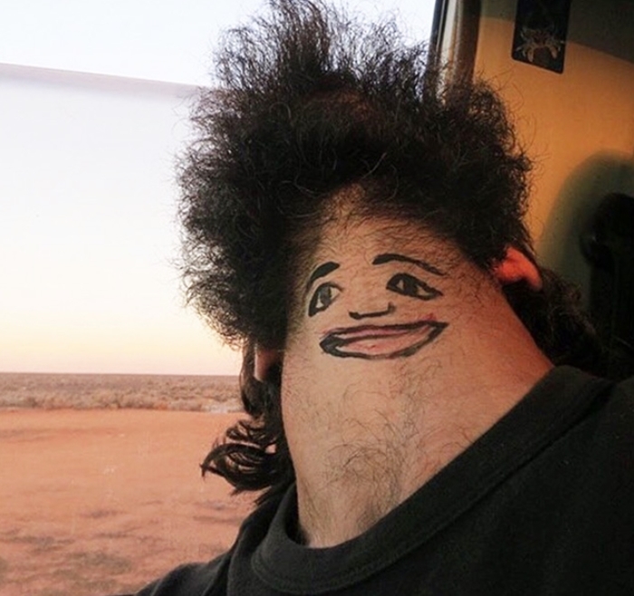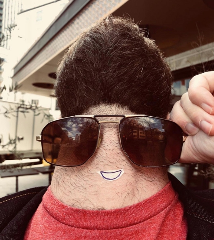 В интернете гуляет новый челлендж - фотки бородатых мужиков снизу. Некоторые подходят к этому творчески и дорисовывают ещё глаза и рот или добавляют очки. Но если у вас нет бороды, а только щетина, то лучше так не делайте - можно перепутать!