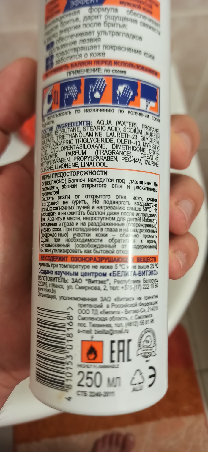 Сегодня закончилась пена для бритья, наконец-то... Спустя более двух лет использования. Это просто чудо Белорусского пенообразования! Хотел посмотреть дату выпуска, но она уже стерлась, поэтому поверьте на слово, а лучше попробуйте (не рекламы ради, а просто совет).