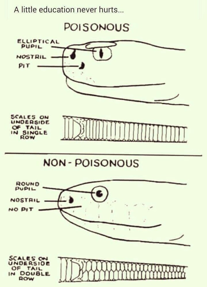 Будьте внимательны при встрече любых змей и пользуйтесь памяткой для распознавания ядовитости