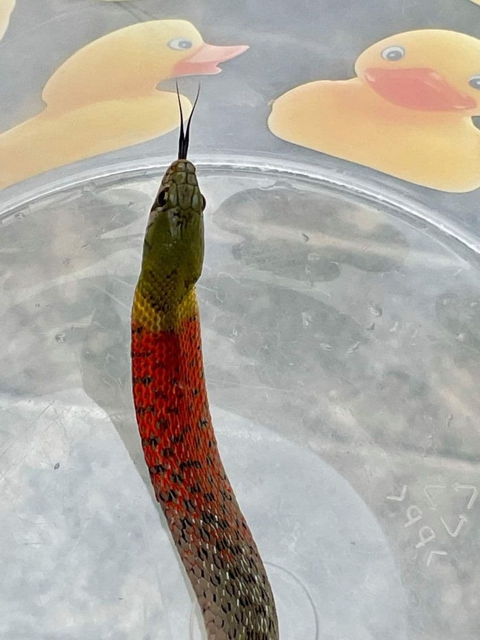 Это яйцекладущая змея. Самка откладывает до 14 яиц