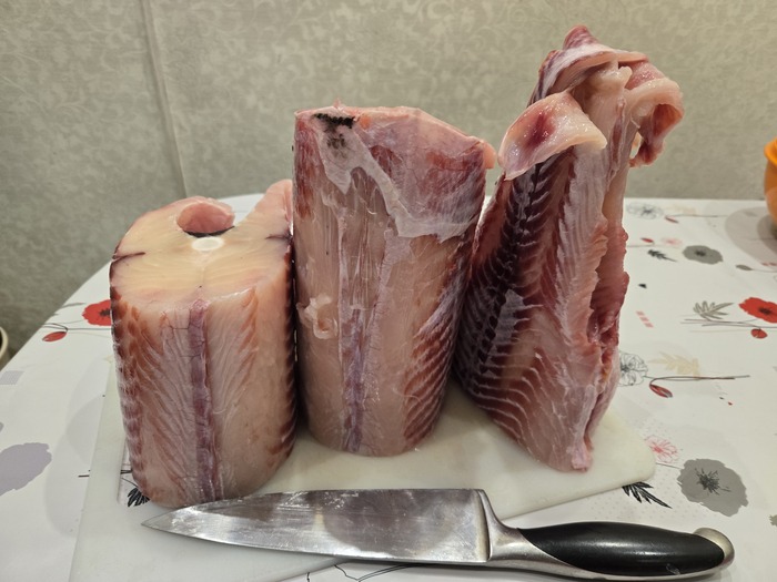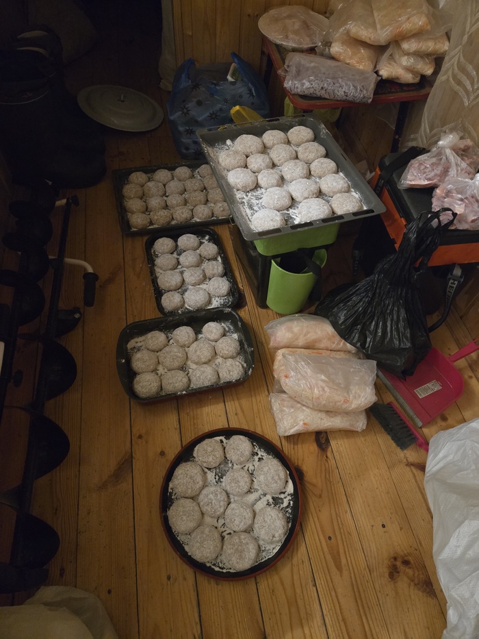Шеф на днях вернулся с подледной рыбалки в низовьях р. Лена. Больше месяца, с начала ледостава и до середины ноября провел в свое удовольствие на заимке. Рыба там непуганая, на блесну 6 видов хищников берет, и размеры у всех просто монструозные. В общем, у шефа эмоций и впечатлений на год вперед, а мне - по хорошему завидовать, и шеф метровую щуку подогнал. Будем делать котлеты.