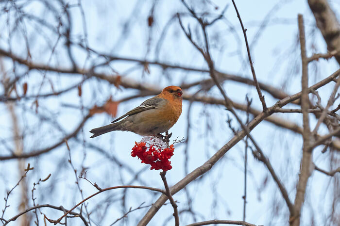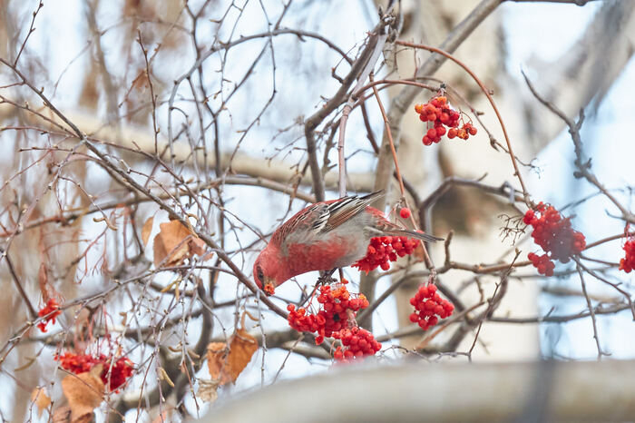 В народе северным попугаем называют обыкновенного щура — за его яркую окраску и короткий изогнутый, как у попугая, клюв. Эти северные таёжные птицы — редкие для нас гости. Появляются они ближе к зиме, и не каждый год. К нам они прилетают за своим основным лакомством — рябиной, которой в этом году очень много. У молодых птиц самцы и самки внешне похожи: голова у них желтовато-зелёного цвета. На второй год жизни самцы начинают преображаться: голова приобретает малиновый оттенок, что выделяет их на фоне подруг. В итоге на третий год жизни самцы предстают перед своими невестами во всей своей красе! Кавалеры надевают ярко-малиновый наряд. Ну чем не попугаи?! А взрослая самка щура почти полностью становится жёлто-зелёной!