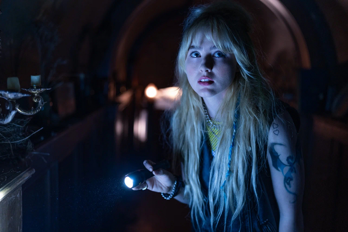 Мэтт Беттинелли-Олпин и Тайлер Джиллетт, покинув тонущую лодку под названием "Крик", вернулись к проекту, который они как раз откладывали в связи с занятостью похождениями маньяка из Вудсборо. Ну, Дженна Ортега оказалась мегавостребованной звездой, Мелисса Баррера встала на защиту Палестины, выступая против геноцида детей (за что, "цивилизованный" мир начал её отменять), и та криковская трилогия, которую дуэт постановщиков хотел довести до логического конца, внезапно развалилась. Сценарий к продолжению "Я иду искать", очевидно, ещё не был готов, а вот другой, "Эбигейл", как раз дождался своего часа. Захватив правдорубку Барреру, которой уже не было места в "Крике" (когда-нибудь, наверное, я опишу эту ситуацию более подробно в рецензии к седьмой, ещё не вышедшей части франчайза), ребята оторвались по полной, сняв историю о похищении ребёнка, которое для всех его участников идёт сильно не по плану.