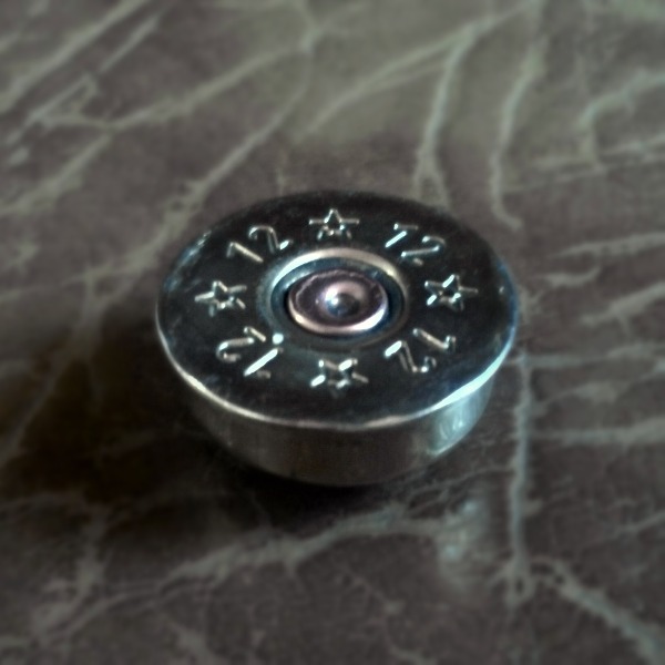 Не так давно приобрел себе китайский аналог Дремеля. Попробовал себя в работе с ним. Использовал фланец гильзы 12 калибра и плашку эбонита. Как теперь к этой заготовке кулона лучше прикрепить колечко для цепочки? Кто из рукастых, помогите добрым советом в этом направлении.