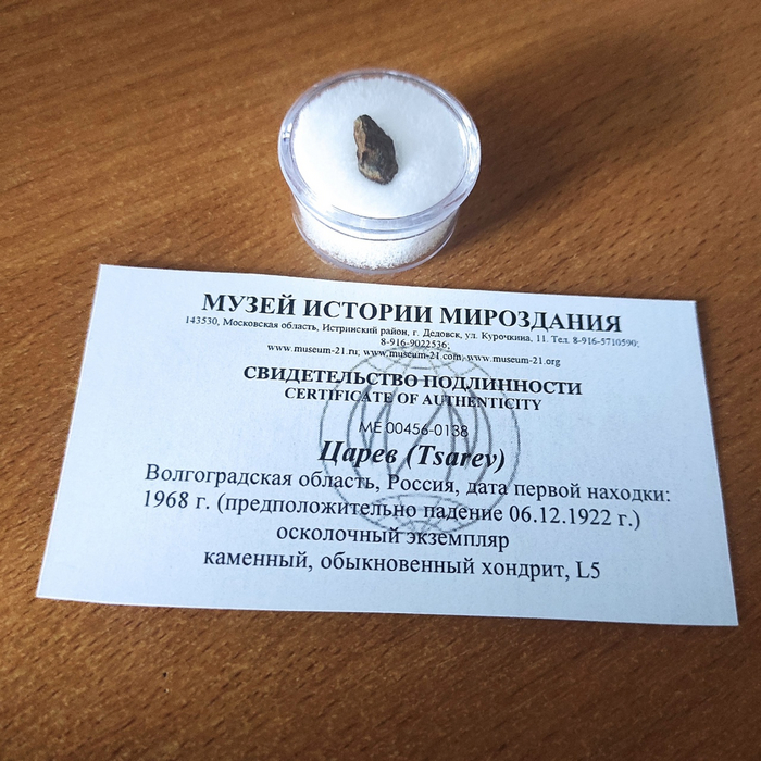 Муромскому планетарию (Владимирская область) подарили кусочек Царевского метеорита. Камушек преодолел большой путь: из бездны темного космоса метеорит упал на территорию Владимирской области, потом кусочек привезли в Иркутск, а уже оттуда — вот, в Муром.