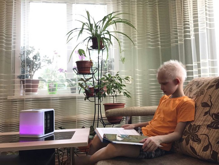 Мальчик никогда не потеет — у него просто нет потовых желез, поэтому за температурой тела нужно всё время следить, рассказывает Олеся Иванова в окружении расставленных по комнатам кондиционеров и увлажнителей воздуха.