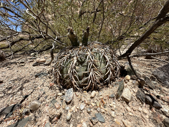 Lophophora alberto-vojtechii. Лофофоры имеют большой реповидный корень, в котором и хранят большую часть питательных веществ и влаги. . Во время длительной засухи верхняя часть значительно скукоживается, уходя под землю, таким образом, растение сохраняет влагу в корнях и уменьшает площадь попадания палящего солнца.