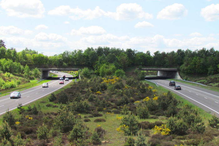 Самый большой «экологический акведук», Natuurbrug Zanderij Crailoo в Нидерландах, тянется на 800 метров и охватывает шоссе, железную дорогу и поле для гольфа. Хотя, конечно, это не первое сооружение. Самое первое было возведено в 1950 году во Франции для оленей, а вот в Нидерландах экодуки настолько прижились, что настроили их более 600! Для всех животных: от крохотных мышек до здоровенных лосей. В США экодуков вообще больше тысячи. Каждый выстроен в соответствии со зверюшкой, для которой предназначен: тут нужно учесть и размер, и поведение, и даже то, как животинку можно подманить!