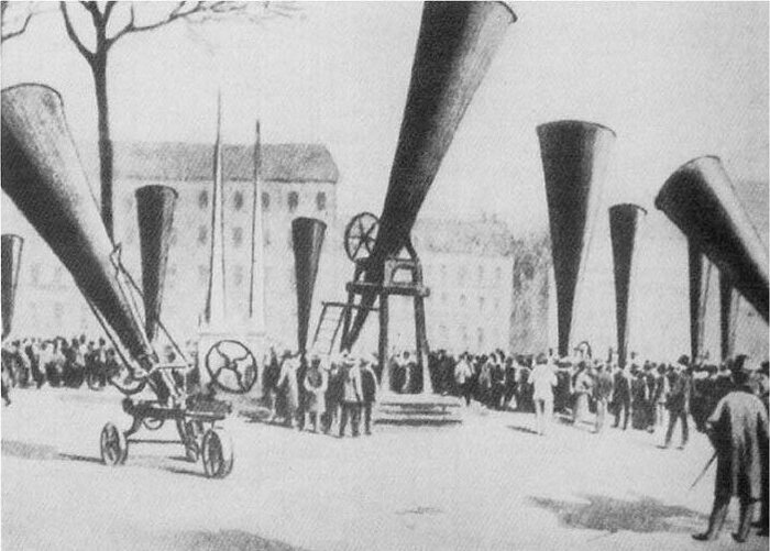 Новая эра наступила в 1895 году. Австриец Альберт Стигер, виноградарь и по совместительству мэр городка Виндиш-Фейстриц, озаботился судьбой урожая. Он соорудил коническую трубу из листового металла. Широким концом, почти в семьдесят сантиметров, она смотрела в небо, а узким, двадцатисантиметровым, упиралась в деревянный постамент. В эту-то трубу и предлагалось стрелять. Вертикально вверх.