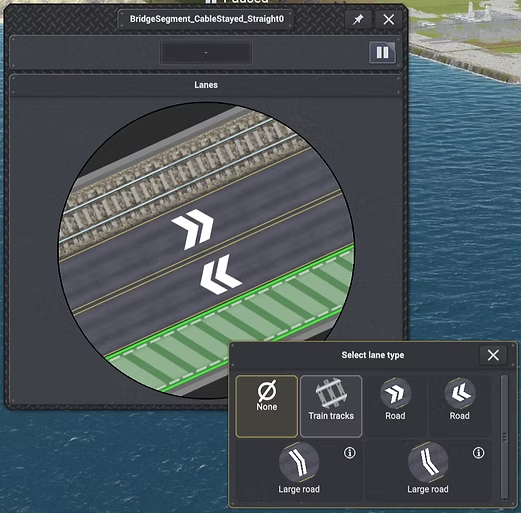 Мост представляет собой модульное покрытие: вы сами выбираете, какие полосы движения и в каком порядке, независимо от самого моста. На небольшом мосту будет две полосы движения: автомобильная или жд. На более широких мостах будет больше места. Только для автомобильных дорог, только для поездов или гибридного моста – решать вам.