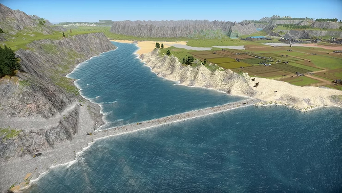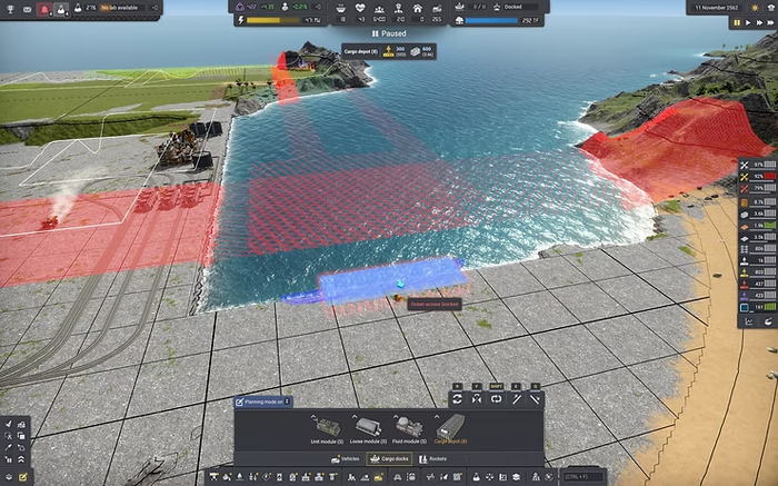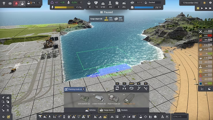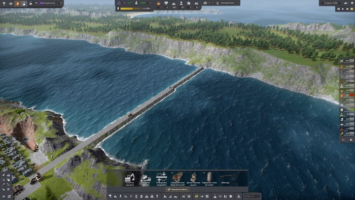 Чтобы добраться с центрального острова на остальной, нужно построить мост. Терраформинг, как я уже сказал, один из столпов игры - мостов ПОКА ЧТО не добавили, обещали в следующем крупном патче, как и плавающие машинки. А пока, вместо них нужно отсыпать вот такие дабмы. Где-то нужно добыть материал которым будет отсыпана суша: