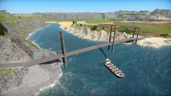 При разработке первоначального предложения возникло несколько проблем с проектированием. Здания возводятся с помощью грузовиков, доставляющих материалы, но как мы доставим материалы на участок моста, который находится посреди океана? Кроме того, если ваш мост ведет к нетронутому острову, береговая линия, скорее всего, будет слишком неровной, чтобы можно было разместить съезд с моста, пока местность не выровняется.