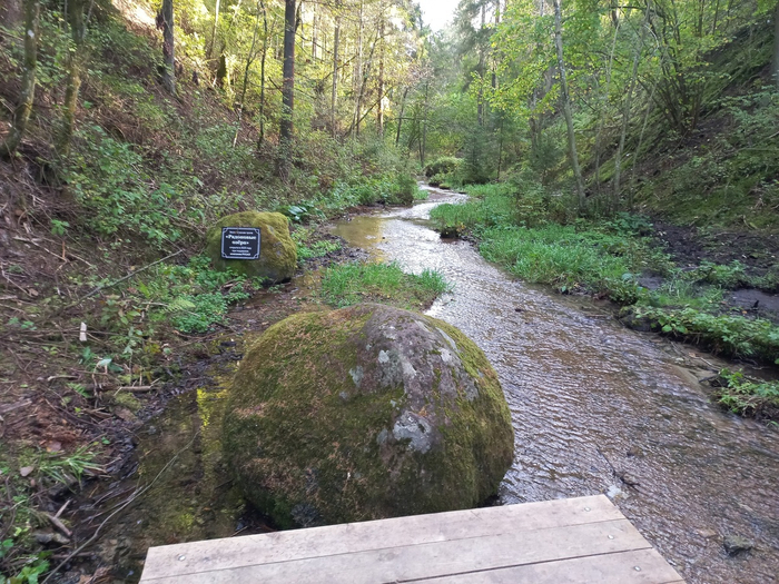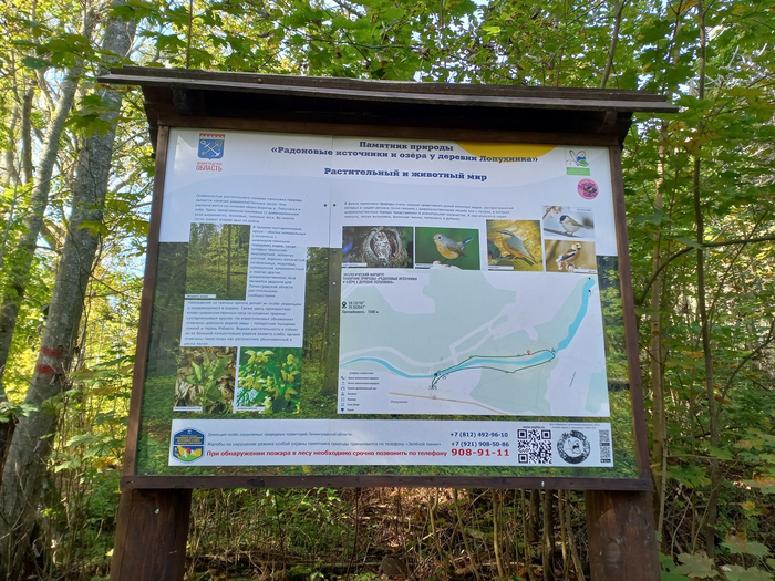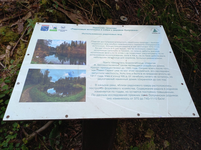 На одном из информационном стендов прочитали, что известный русский писатель и драматург тех лет Нестор Кукольник, автор романсов «Жаворонок» и «Попутная песня» на музыку Глинки, называл Лопухинку «Швейцарией с висящими на скалах рощами и садами». На Швейцарию, конечно, Радоновые озёра смахивают мало, но местность в целом глаз радует, пройтись по экотропе было приятно.