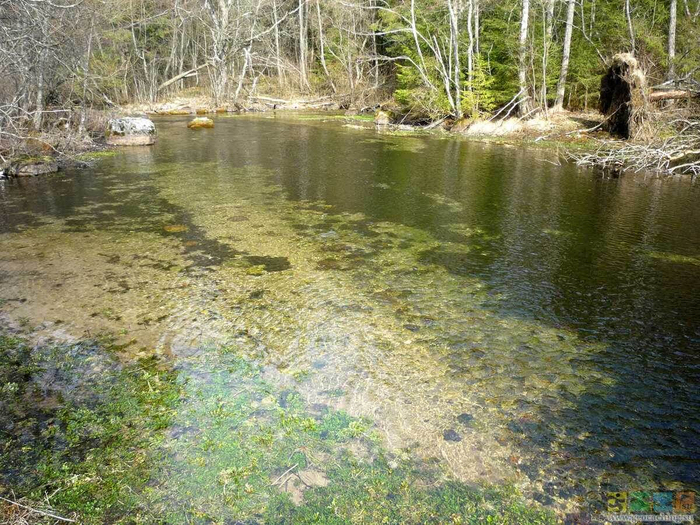 Самое интересное место находится в конце тропы. Или в начале, если, как мы, идти шиворот-навыворот. Это несколько довольно мощных родников на дне каньона рядом с рекой, около которых оборудовали купальню.