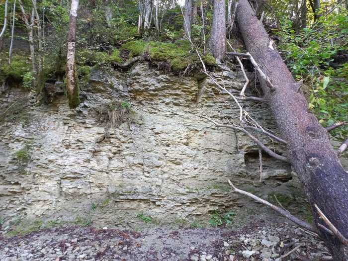 Породы здесь мягкие, в основном известняк, поэтому рекам не так уж сложно было вгрызаться и пробивать себе путь. Из известняка раньше активно строились дома, хозяйственные фольварки и культовые места. На тропе "Радоновые озёра" можно увидеть обнажения этих пород. Можно даже поискать окаменелые останки доисторических животных возрастом в 450 миллионов лет. Всяких разных трилобитов и прочих моллюсков в здешних осадочных породах много, потому как неразумные доисторические твари в незапамятные времена активно дохли от передозировки радона.