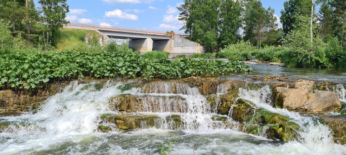 В 1930-е годы на реке Суенга, как и по всему СССР, построили малую ГЭС для электроснабжения отдаленного района. С появлением центральных сетей станцию закрыли, а на ее месте остались дамба, мост и живописный рукотворный водопад.