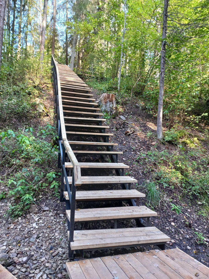 Экотропа проходит по верху каньона, которые когда-то пробила река Лопухинка. Всегда удивлялись, какие здесь, на Глинте, высоченные каньоны образуют совсем небольшие реки. Вот, например, каньон реки Сума около Кайболовского городища.