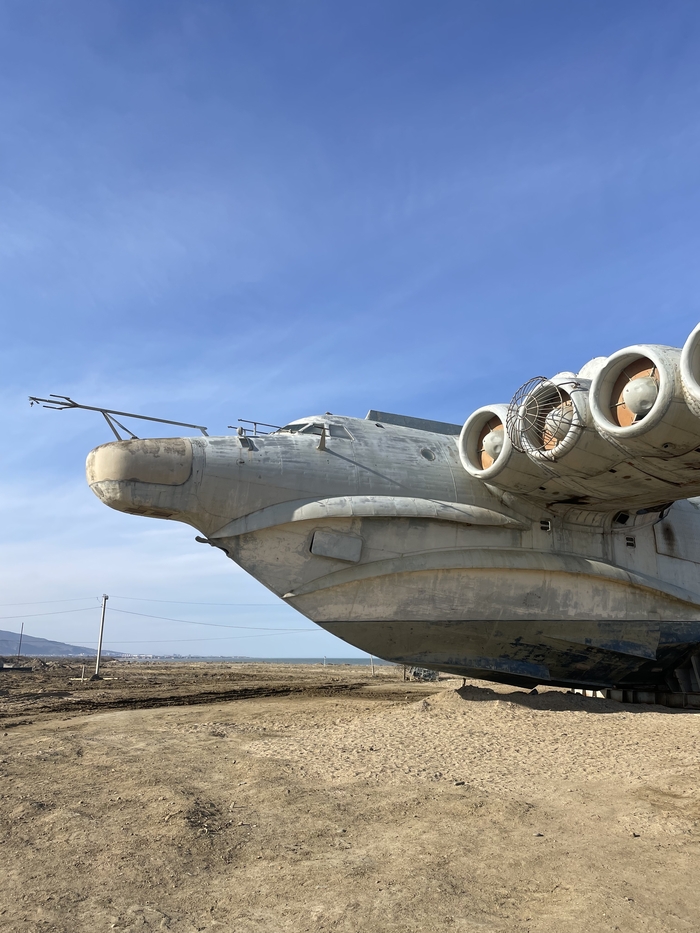 Выступая в открытой печати, по условиям секретности он не мог тогда сказать прямо, что уже строит уменьшенный прототип 2,5-тысячетонного экраноплана с вертикальным взлетом. Подъем аппарата над водой на 1–2 м позволил бы ему стартовать независимо от морского волнения.
