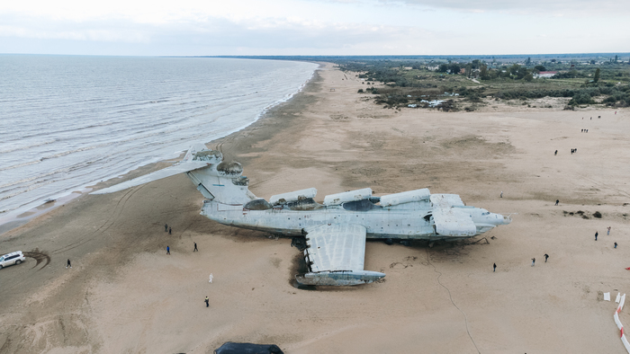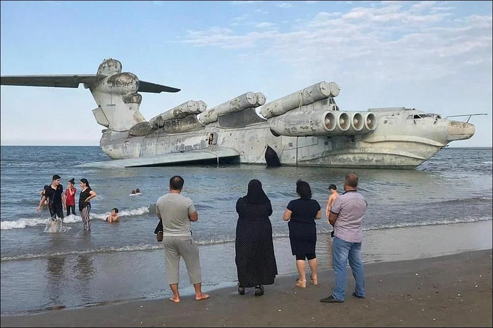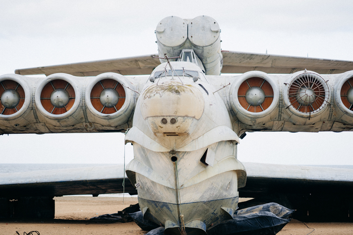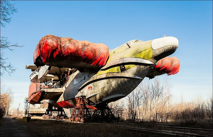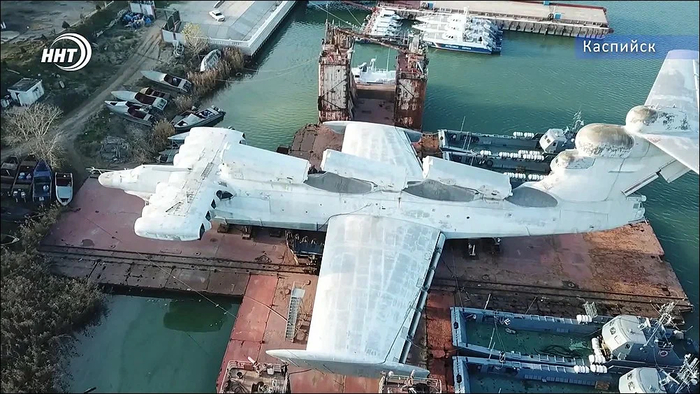 Но тут настали новые времена и всё кончилось. Длительное время он был законсервирован на территории завода "Дагдизель", который является режимным объектом, что и спасло экраноплан от разграбления.