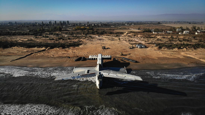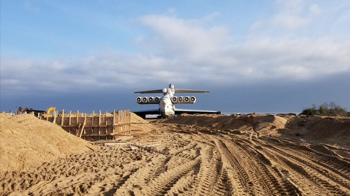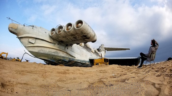 Сам «Лунь» сейчас находится на берегу Каспийского моря, буквально краешком касается воды. В этом месте пляжа через несколько лет создадут военный парк, где помимо экраноплана будут разные самолетики и другие машинки для уничтожения людей.