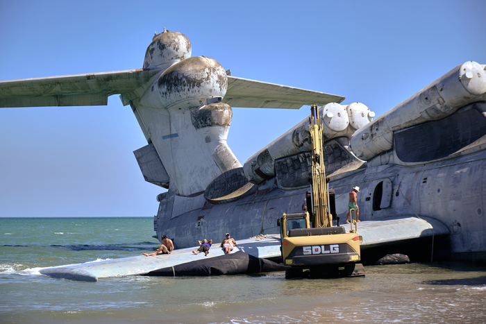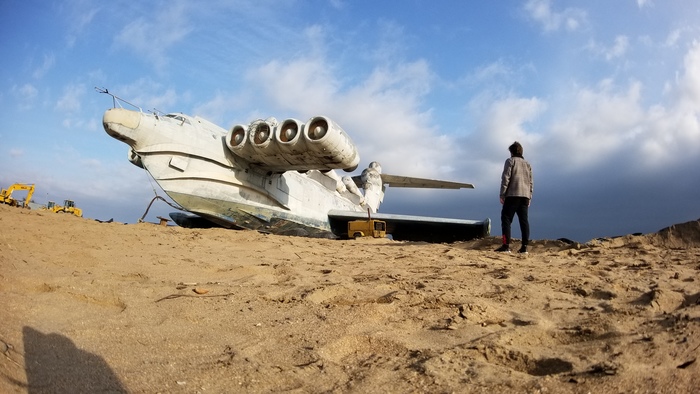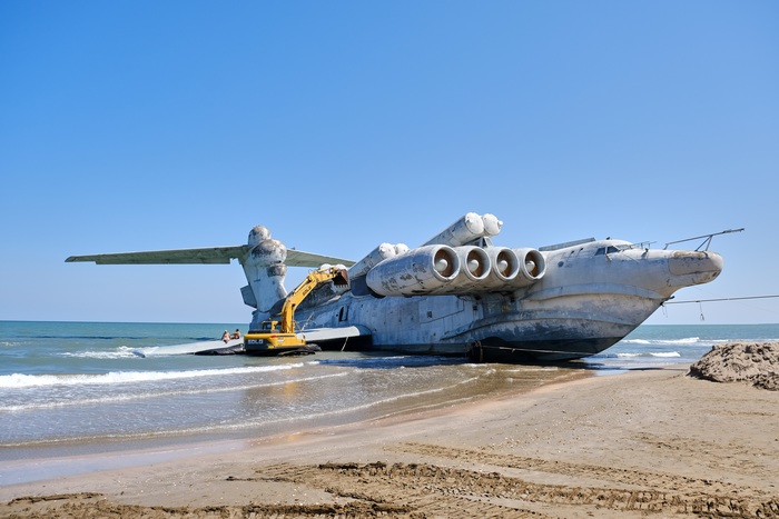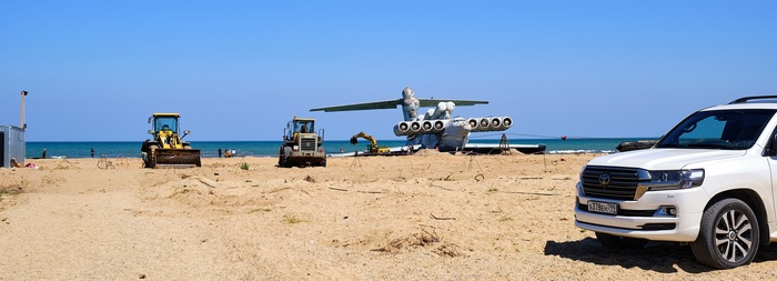 Мы были здесь в августе 2020 года - экраноплан тщетно пытаются вытянуть на берег.