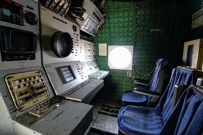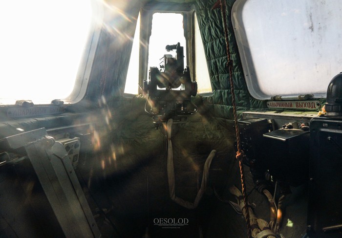 Тут же в кабине есть люк наружу, но нам туда не надо, поэтому мы отправляемся дальше по фюзеляжу. За кабиной пилотов оказалась радиорубка, дверь закрыта, а внутри темно. Но заглянув через окошко понял, почти все аппаратура демонтирована. Поэтому идем дальше, в жилую часть. Автономность плавания составляла 5 суток, большую часть времени экипаж находился в бодрости. Но все же тут есть кают, гальюн, и даже камбуз. Следующие отсеки напичканы какими-то приборами и аппаратурой. Вроде как она нужна была для проведения тестов и различных испытаний. А вот вторая половина экраноплана пострадала очень сильно. На первый взгляд все выглядит целым, но стоит присмотреться и можно заметить отсутствие целых модулей. Навигационное оборудование занимало целый отсек. К сожалению на этом месте меня попросили на выход, и я не успел сходить в хвост. Там еще осталось несколько отсеков, радары, и место второго стрелка. Но охранник уже закрывал дверь, а трактор уезжал(как вы думаете, зачем я зависел от трактора?).