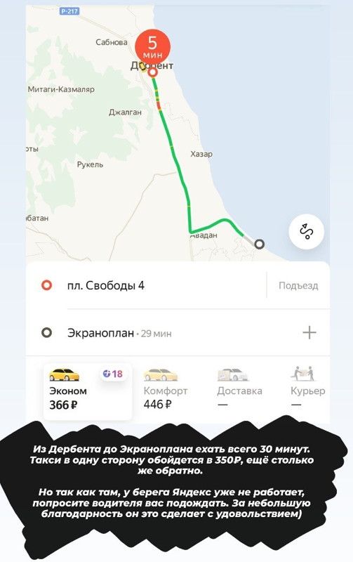 2. Из аэропорта сразу заказываем такси до Дербента. Тут отлично работает яндекс. Цена в одну сторону 1700. Если вы одни и у вас есть желание, то можете конечно поискать попутчика… Но у меня не было на то времени. Таксисты с яндексом работают нормально, в Дербент везут без проблем, тут к этому уже привыкли. 110 км хорошее дороги проезжают за 1,5 часа.