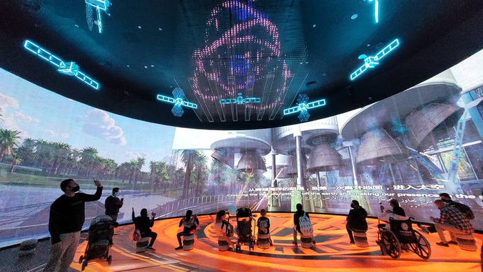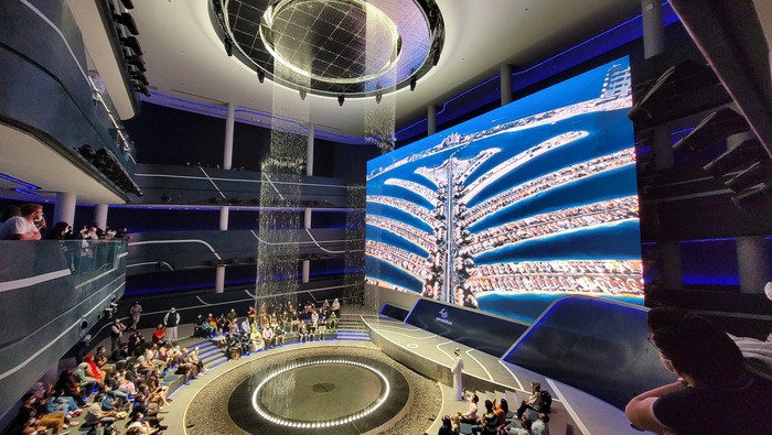 а также концертная площадка, гигантское проекторное шоу, лазерные шоу, самый огромный в мире лед экран, обзорная площадка взмывающая в небо, даже с нее кстати непонятно где заканчивается территория всего этого безумства