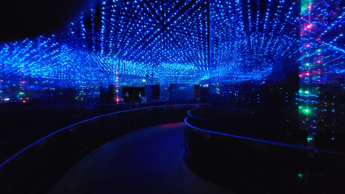 И если днем тут все красочно, напоказ и на контрасте, то при наступлении темноты это новый мир. Загорается все что только можно, от гигантских экранов до маленьких светодиодов на дорожках. Все настолько спроектировано до мелочей и снаружи и внутри, что кажется будто находишься в футуристической компьютерной игре, где разрабы использовали свою фантазию на полную для создания различных локаций, только все эти локации на каждом шагу.