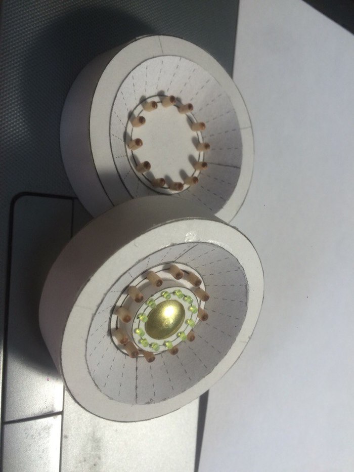 Успокоился с башней - страшное было позади, и тут передо мной открылась куча кропотливой работы в виде катков. У этого танка их 14 штук. Чтобы изготовить полностью один каток у меня уходило до 2,5 часов. Катки полностью бумажные, прочерчено все вручную, кроме внутренних конусов, их я напечатал. Катки до сих пор не доделаны, но в данный момент их 14. Решил сделать упрощенные балансиры, ибо не вижу смысла их копировать. Использовал зубочистки, леску 1.3 мм, картон и канцелярские кнопки.