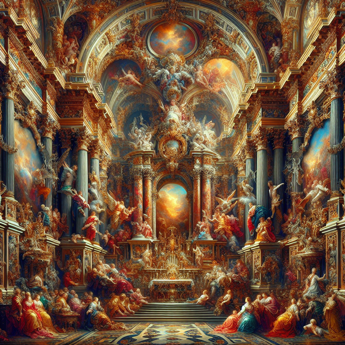 12. Барокко: - Богатый, драматичный стиль с динамичными композициями, яркими контрастами и детализированными орнаментами.