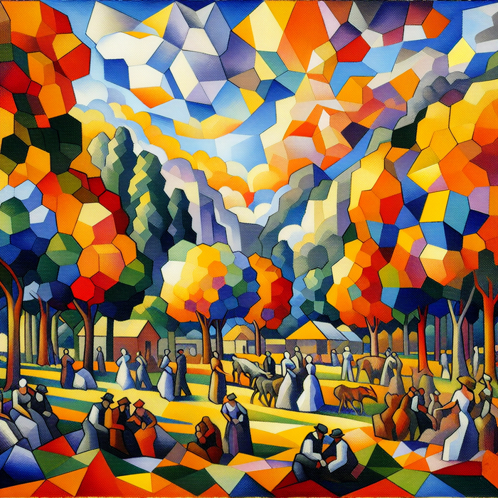 5. Кубизм: - Создает изображения, разбивающие объекты на геометрические формы. Включает элементы многовидового восприятия, где объект изображается с нескольких точек зрения одновременно.