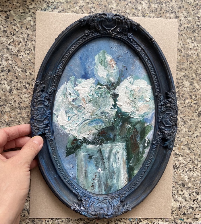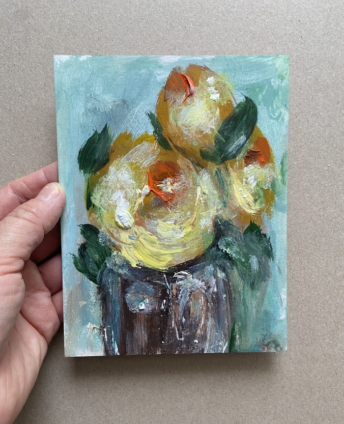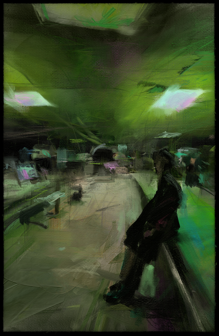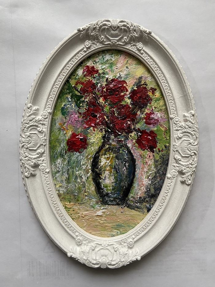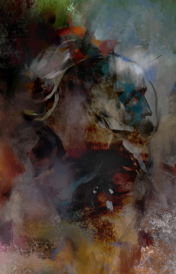 В этой картине мне хотелось добиться эффекта, при котором цвета и массы работают совместно, усиливая и дополняя друг друга. Получается определенная вибрация, сила живописных элементов, их игра, которая воздействует на зрителя.