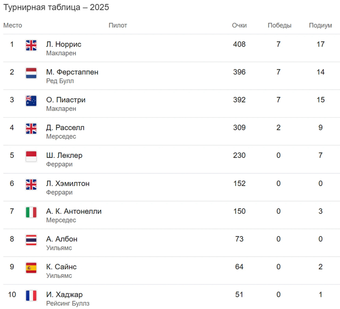 До Гран-при Катара Норрис имел комфортное преимущество в 24 очка над Ферстаппеном и Пиастри. Стратегический триумф Ферстаппена в Катаре полностью изменил динамику чемпионата.