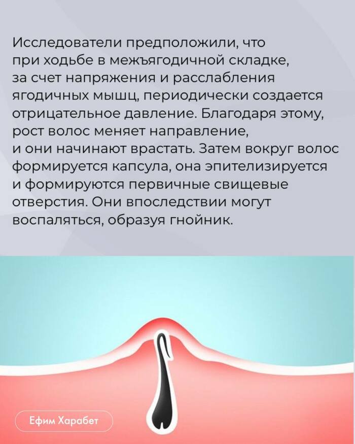 Обнаружил я эту штуку 6 лет назад. Было похоже на прыщ между ягодиц. Пошел в поликлинику. Там врач осмотрела меня и направила на консультацию в больницу. В больнице доктор сказал, что это киста. Но так как она меня не беспокоила, решили ее не трогать.