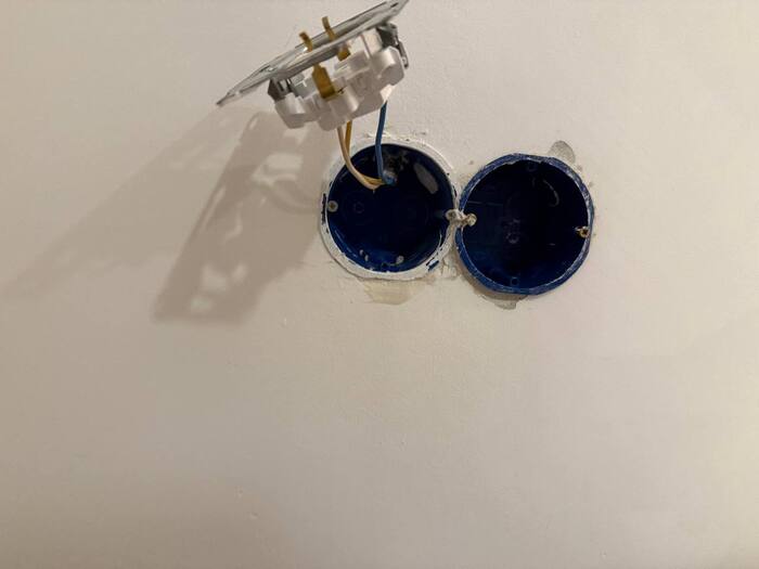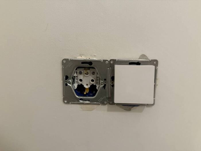 После продолжительного гугления/чатджипитения был выбран вариант соединения зигби-кнопки с обычным возвратным выключателем шнайдер. Тестовый образец содержал кнопку без корпуса с припаянными проводками от юсб-кабеля, подключенные в штатные колодки выключателя. На столе образец прекрасно работал. Однако при установке в подрозетник начинал ловить наводки от проходящих в соседнем посте 220в, которые приводили к фантомным нажатиям кнопки, причем во всех режимах сразу. В какой-то момент кнопка уходила в защиту и больше не принимала сигналы от умного дома, приходилось ее доставать и ребутить.