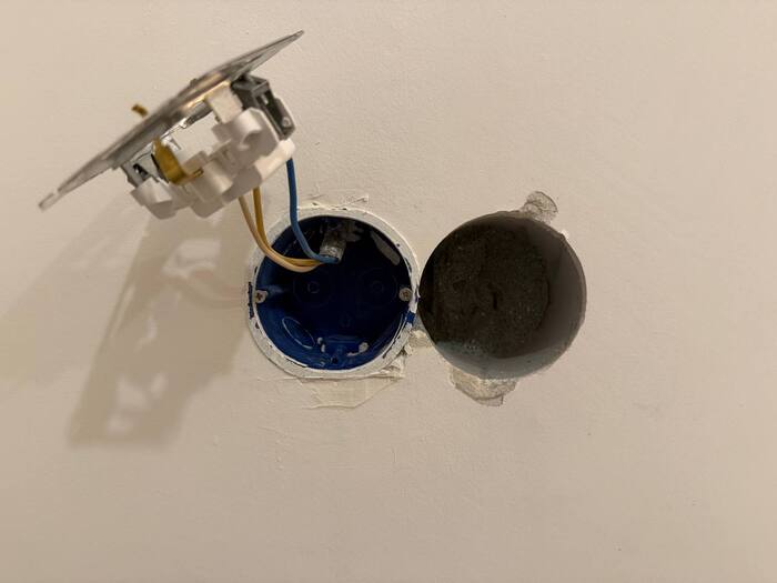 Далее все как обычно: делаем дырку где хотим, вмазываем стакан, инсталлируем выключатель в него, вешаем рамку. На выключатель цепляем любой нужный сценарий и пользуемся. У меня в данном случае он является виртуальным проходным выключателем.