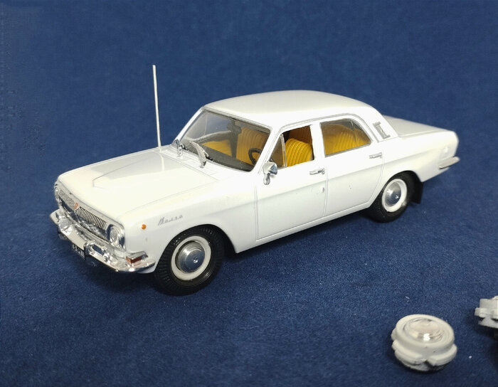 P.P.S. а уже после того, как весь материал статьи был подготовлен и отснят, по просьбе заказчика, я заменил "Волге" колёса. Колёсные диски и колпаки - результат 3D-печати и окрашивания, а покрышки - саратовские. Так и правда, намного лучше ;)